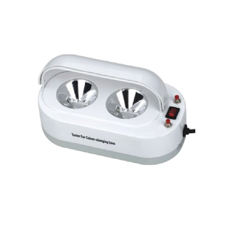 Este dispositivo está diseñado para comprobar la reacción de lentes fotocromáticas ante la exposición a luz intensa. Ideal para ópticas, laboratorios y fabricantes de lentes, permite verificar la calidad de oscurecimiento de forma rápida y segura.