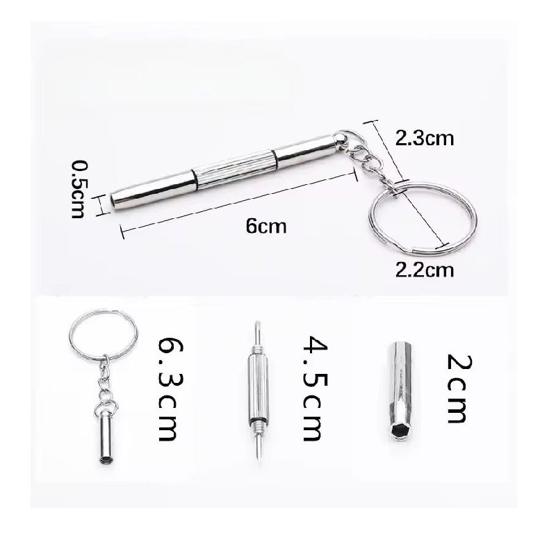 Herramienta multifuncional compacta y práctica, diseñada para facilitar el mantenimiento y ensamblaje de anteojos. Integra tres tipos de puntas clave (O, Phillips y plana) en un solo dispositivo para realizar diversas tareas con máxima comodidad.