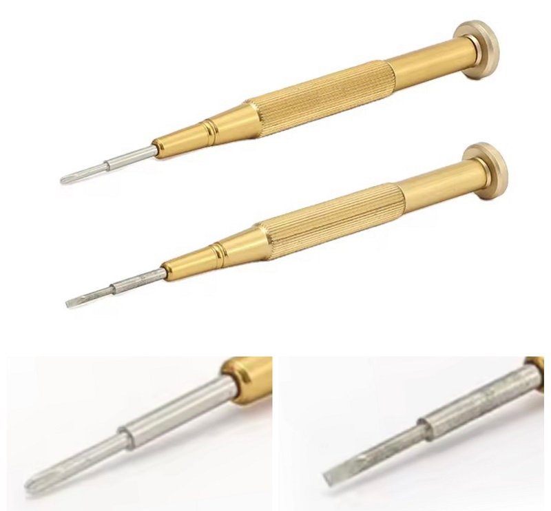 Destornilladores de precisión especialmente diseñados para trabajos ópticos y microajustes. Cuentan con mango dorado ergonómico y punta fija de acero endurecido, garantizando durabilidad y exactitud en tornillería fina. Se venden por separado al mismo precio.