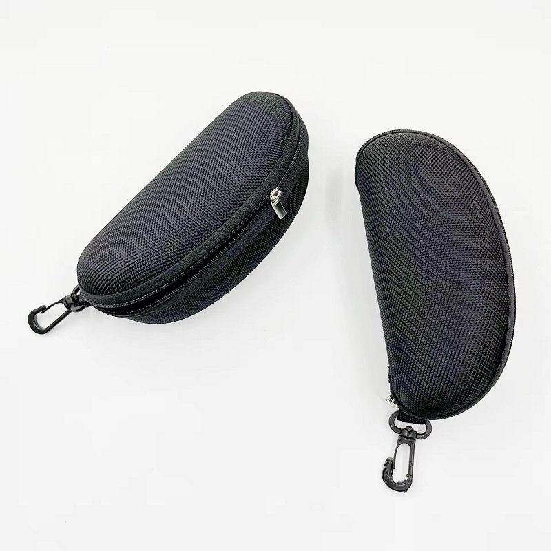 Estuche de gran tamaño fabricado en material EVA de alta calidad, ideal para gafas de sol grandes o deportivas. Su exterior negro resistente, cierre seguro y práctico mosquetón lo convierten en una opción funcional para transportar y proteger tus lentes con total comodidad.