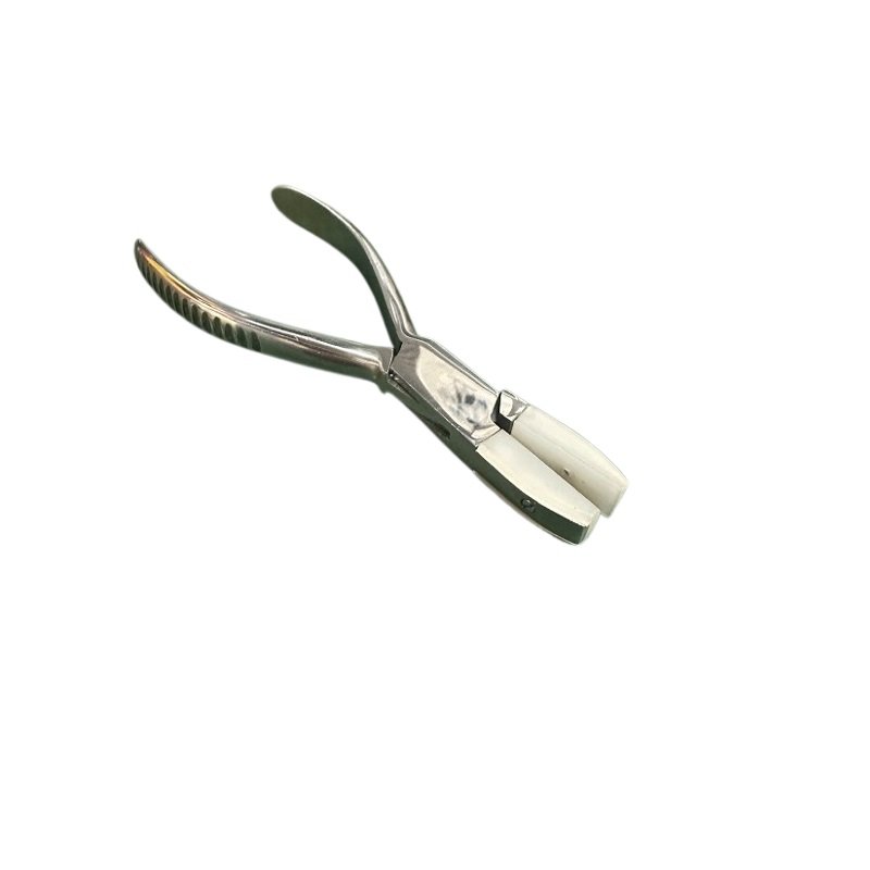 Herramienta especializada para óptica, diseñada para realizar ajustes precisos en gafas sin marcar ni dañar la montura. Sus terminales de plástico intercambiables ofrecen un contacto suave, ideal para trabajar con materiales delicados como acetato, metal o titanio.